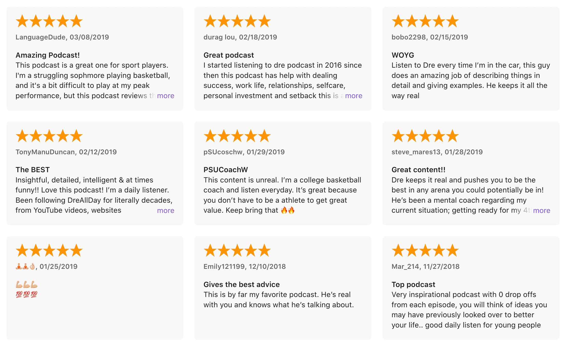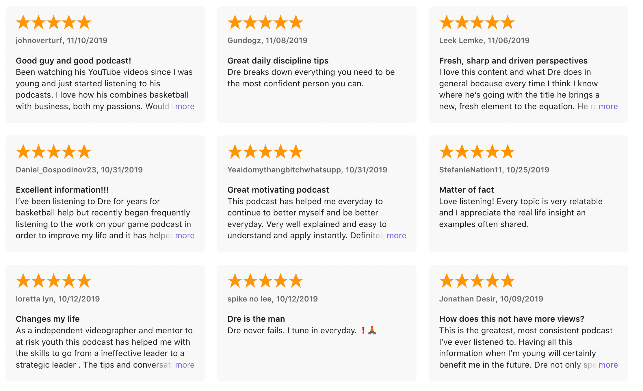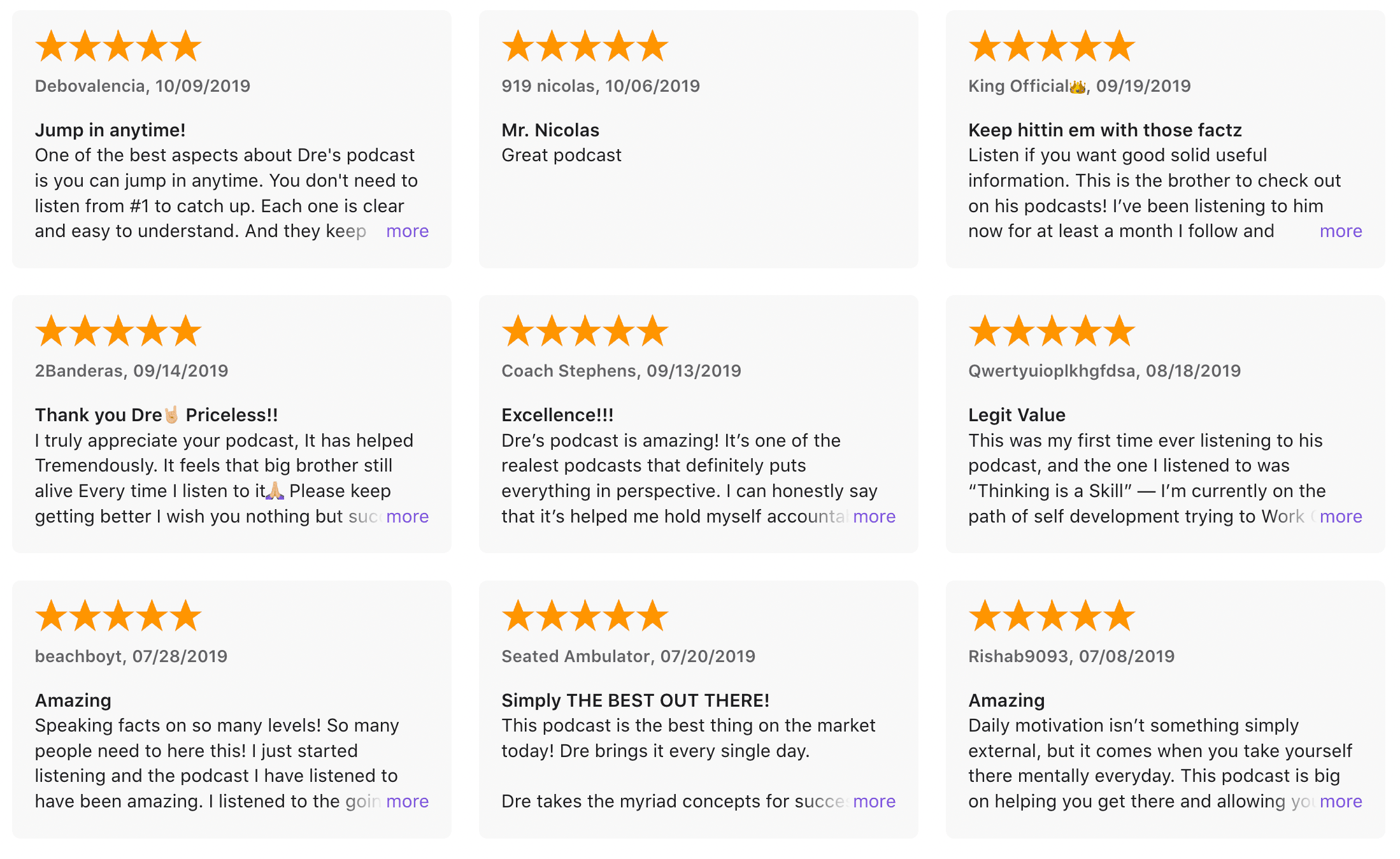 Dre's daily Work On Your Game Podcast has over 2,300 episodes and more than 5 million downloads.