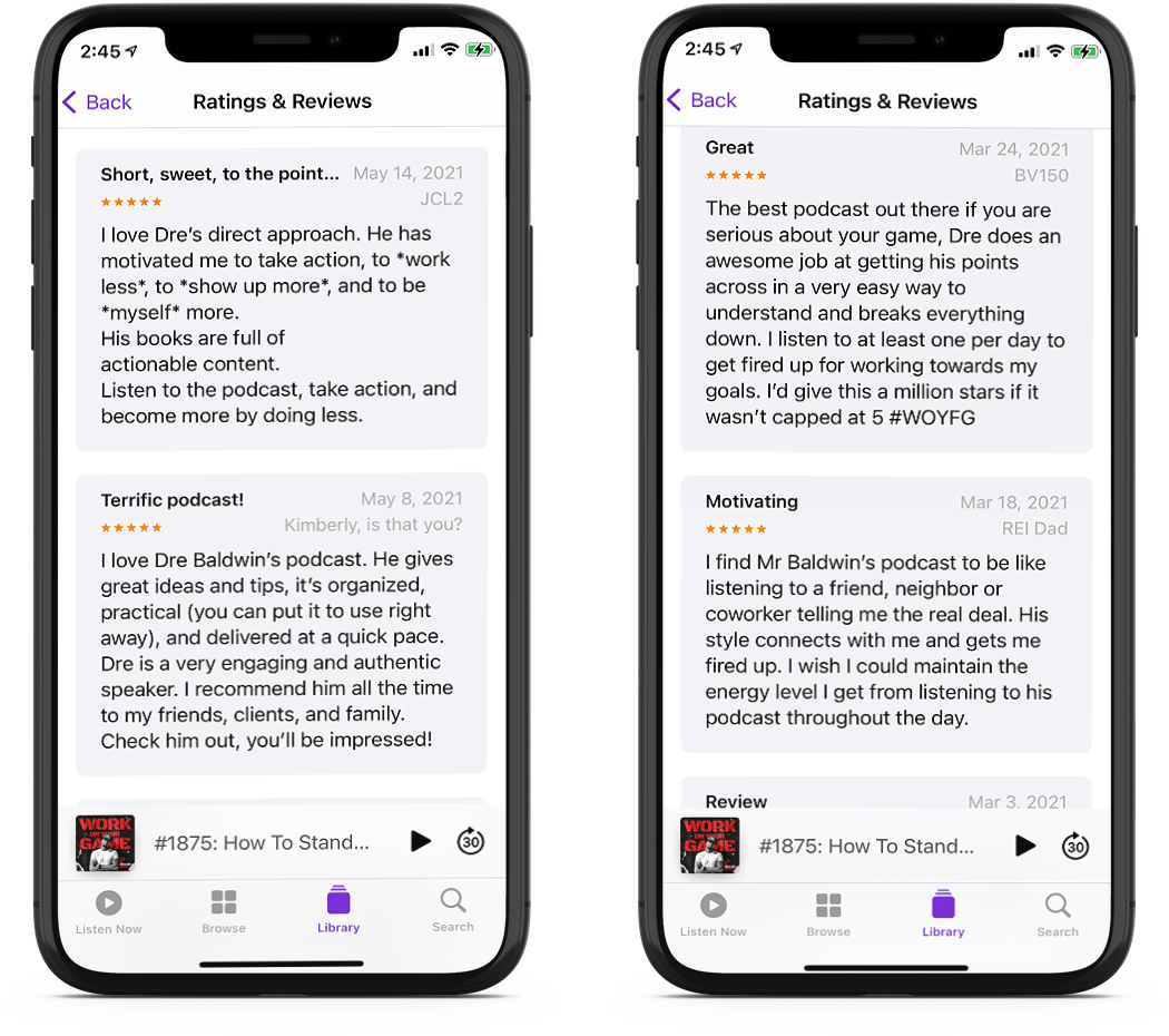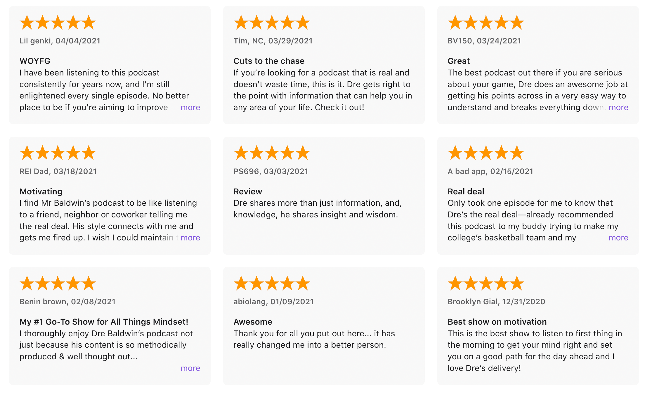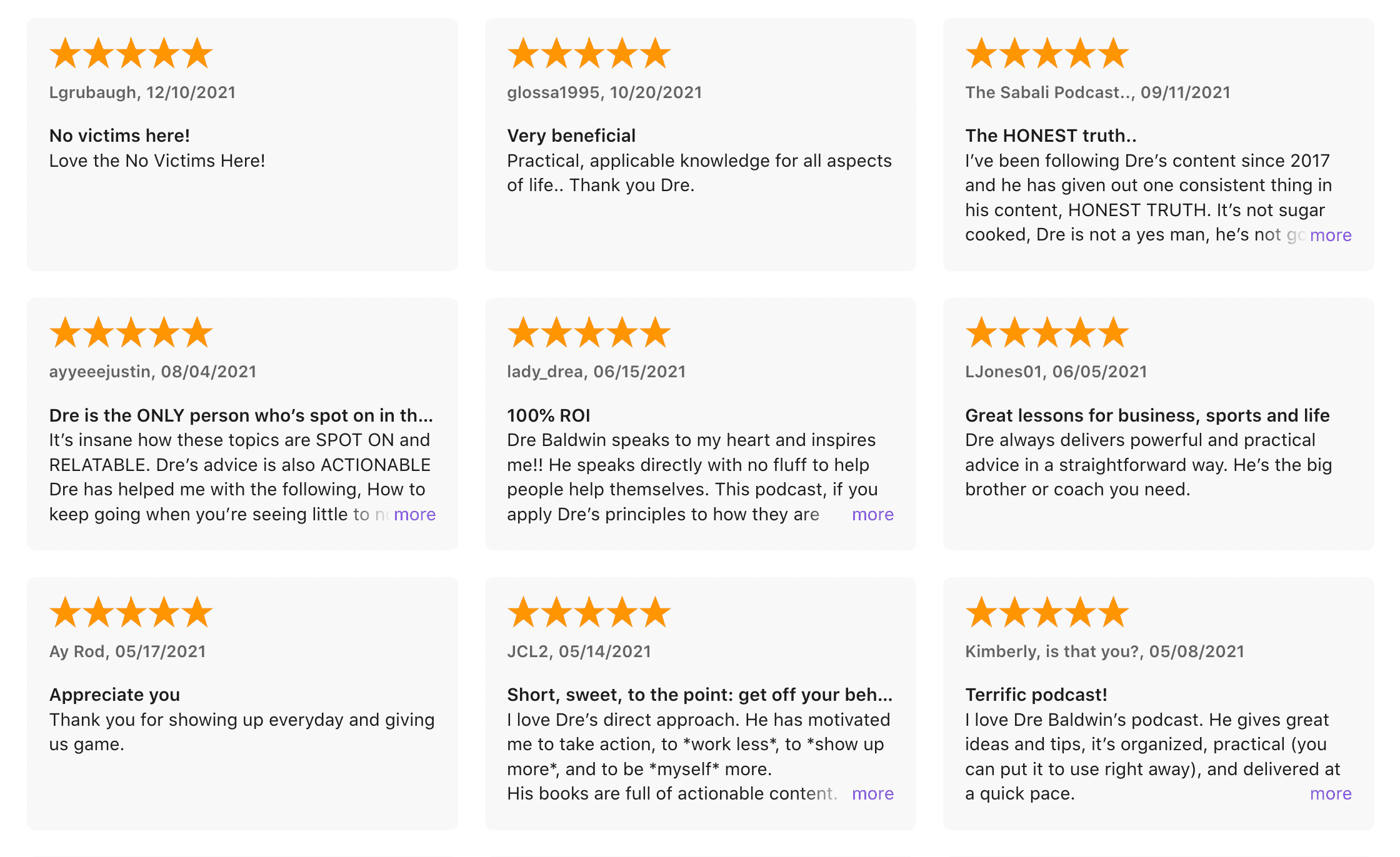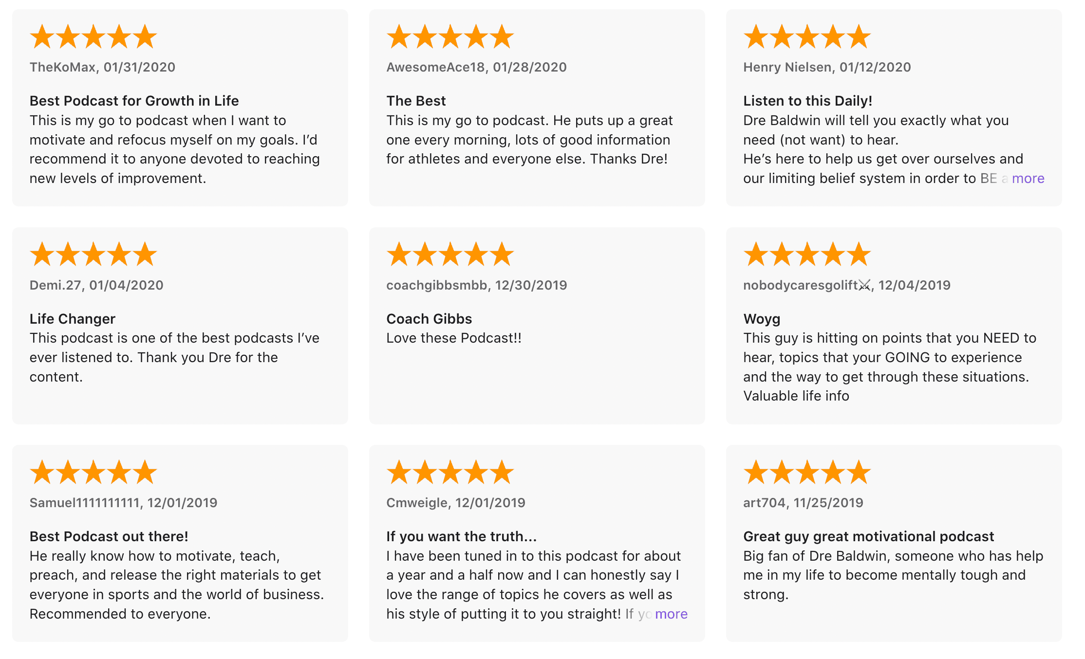 Dre's daily Work On Your Game Podcast has over 2,300 episodes and more than 5 million downloads.